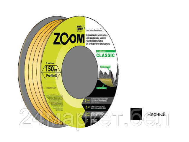 Уплотнитель "E" черный 9x4 мм сдвоенный профиль (2х75м) ZOOM CLASSIC 02-2-4-110